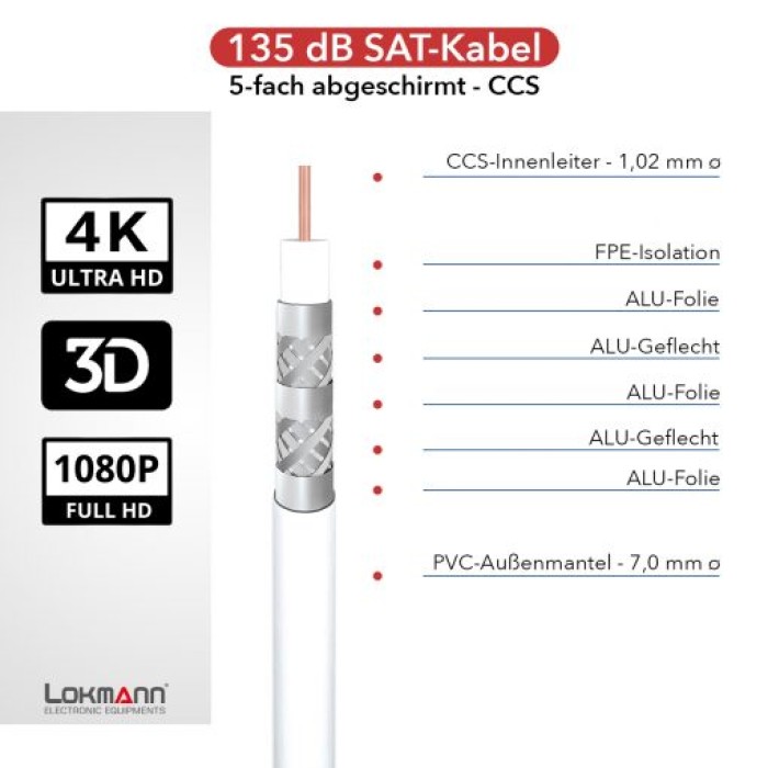 Το Lokmann 1951-5C είναι ένα ομοαξονικό καλώδιο υψηλής ποιότητας με διάμετρο 7.0mm. Διατίθεται σε εύχρηστο καρούλι 500m. Χαρακτηρίζεται από καλές τεχνικές παραμέτρους - πενταπλή θωράκιση, ένα εσωτερικό αγωγό από χαλκό διαμέτρου 1.02mm. Συντελεστής θωράκισης> 135 dB.