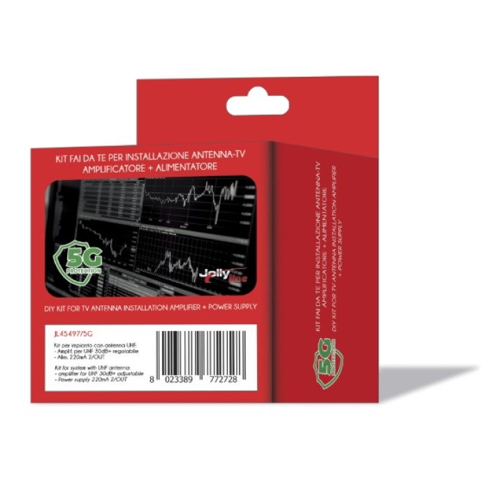 The Jolly line JL45497/5G is a pole amplifier with 1 input and 2 outputs in its power supply. With built-in 5G filter.