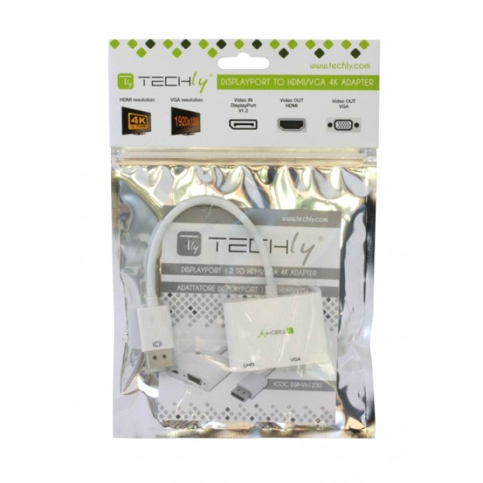 Techly ICOC DSP-VH1220 - DisplayPort 1.2 to HDMI/VGA 4K Adapter