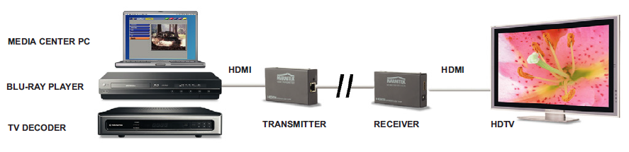 - The built-in HDMI splitter enables you to connect an HDTV to the transmitter, so you can still watch the connected devices locally