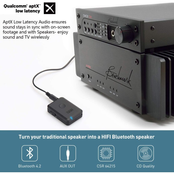 August MR260Bluetooth Transmitter & Receiver The August MR260 is a device that works like a Bluetooth Transmitter where you can connect your Bluetooth headset or speakers via an audio cable to any audio source such as TV, computer, radio, etc. an..
