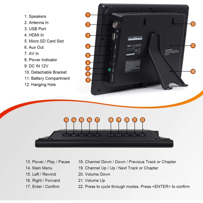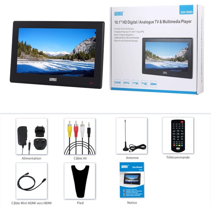 August DA100D DVB-T & DVB-T2 - Portable TV 10.1"