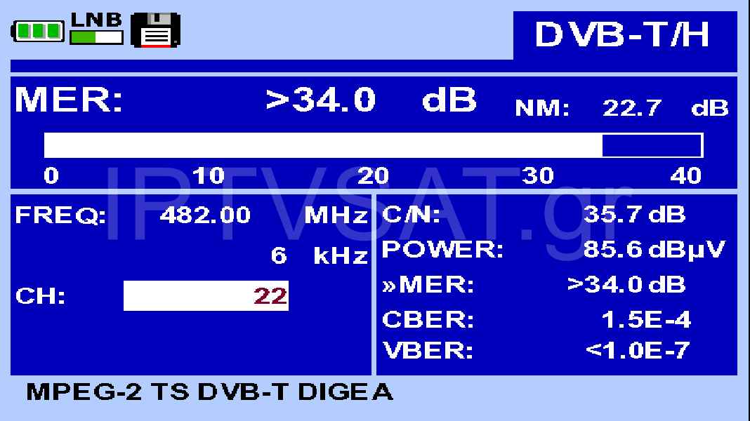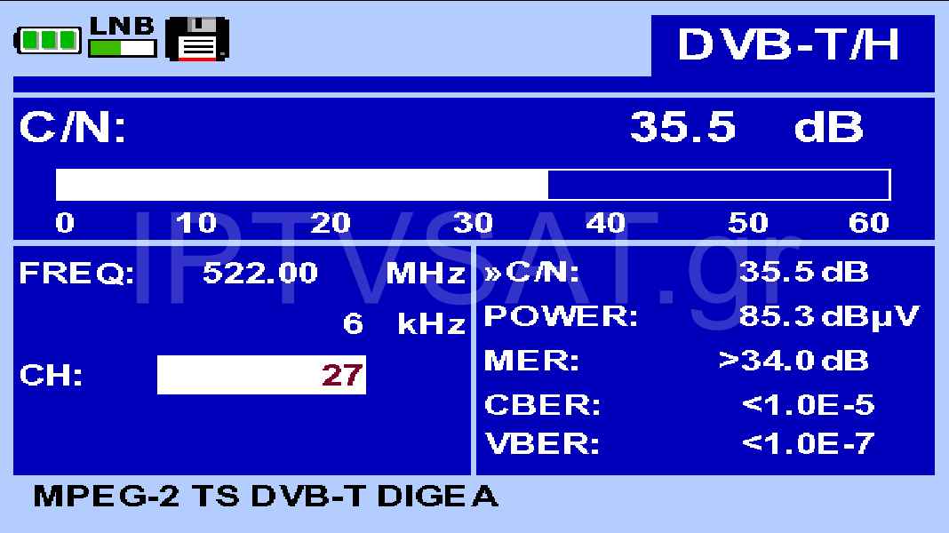 We installed the antenna in a horizontal position on a rooftop mast, with its surface perpendicular to the emission center. We performed measurements on all available channels in our area and found that the antenna in many cases showed strong performance with MER exceeding the 34 dB that the instrument could show, while the lowest MER was presented in the weak 28 channel with the foreign channels, which we had 82 dBμV and MER 27 dB. At ERT on channel 21 we achieved a maximum MER of 30 dB with a level of 82.5 dBμV. In all other channels, we had high levels above 80 dBμV and MER above 34 dB that the instrument could show.