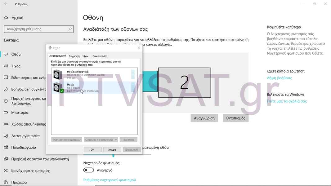 In audio setting, we can choose in which display the audio will be trasfered.
