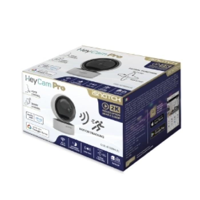 iSNATCH HEYCAM PRO is a motorized Wi-Fi indoor IP camera with 2K (3MP) video and horizontal tracking. With PAN H 355° rotation and V 90° tilt enabling PATROL mode for automatic movements. Audio and video recording to MICRO SD (maximum 128 GB, not included), sends push notifications to the smartphone in case of movement. HeyCam Pro works with the HeySmart app that allows real-time viewing, taking photos, recording and exporting videos stored in memory. Also through the application it is possible to use the Talk&Listen function thanks to the two-way sound. Night vision is infrared thanks to 6 IR LEDs. Compatible with ONVIF protocol for connecting to CCTV. Compatible with voice-enabled Alexa and Google Assistant speakers.