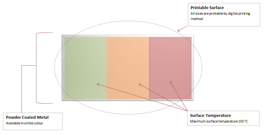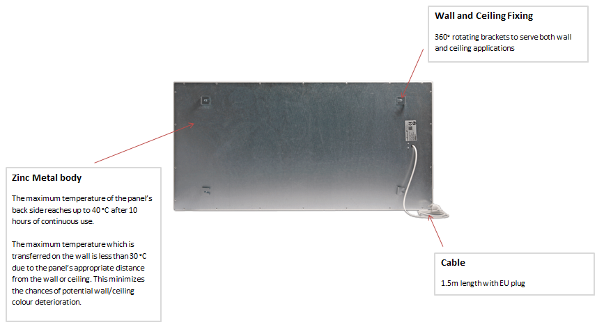 Eco-line infrared heating panels of Welltherm have a maximum surface temperature of 105°C. The difference between this series with others is in their operation. They start to operate at their maximum performance and consumption gradually decreases to 20% and the panel reaches its maximum surface temperature (about 1 hour)!